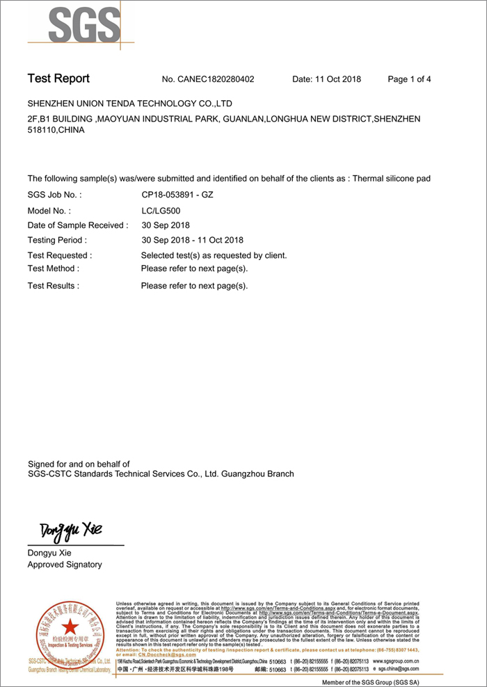 LC600導(dǎo)熱硅膠片實測認(rèn)證