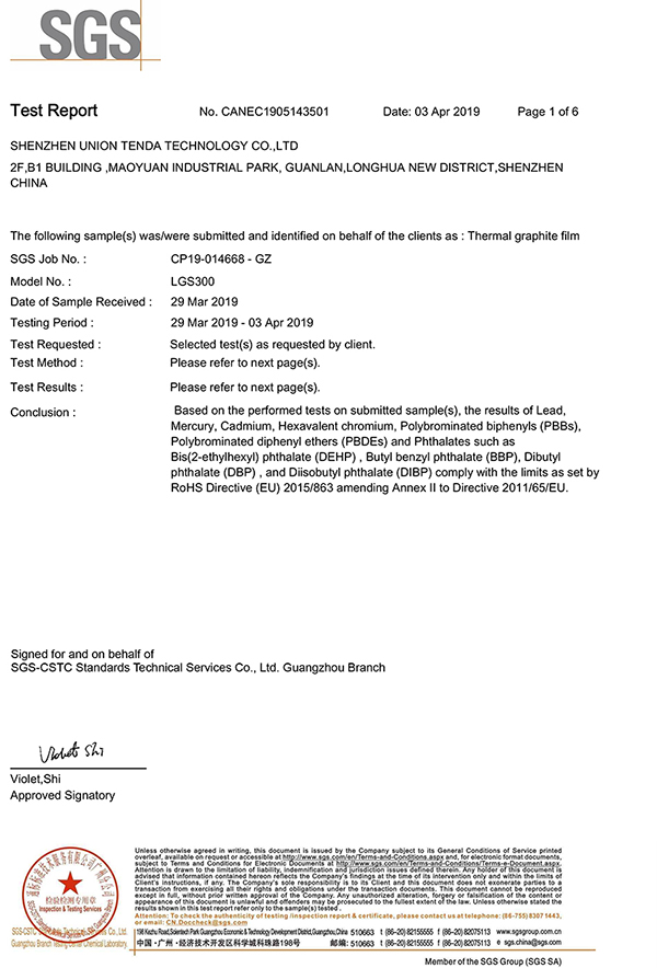 石墨散熱片ROHS報告